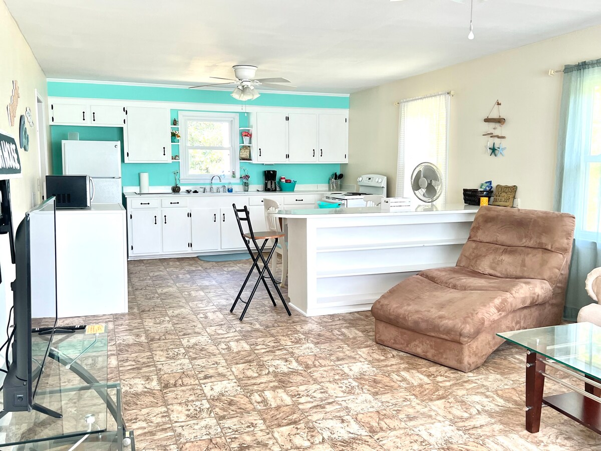 If you are looking for a place to kick your shoes off and relax this is it! Whether its on the comfortable couches or on your own private deck watching the sunset and the cows grazing peacefully in the pasture. Everything has been updated from the new floors, paint, and new appliances and it's sparkling clean. the big bedroom has a king size bed and plenty of space to unpack and relax.