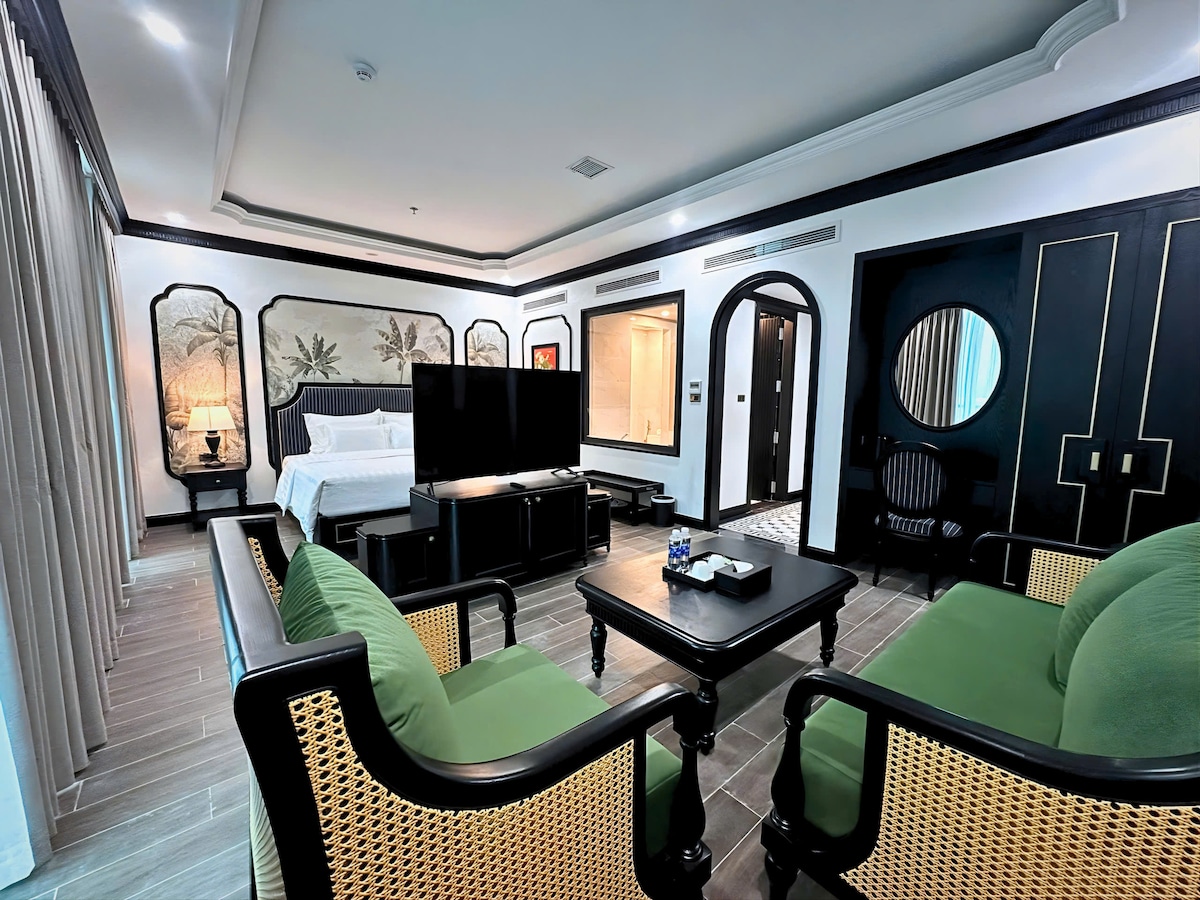 A luxurious 2-storey European-style villa of nearly 800m² on a 3,300m² estate with a private pool, billiards room, garden, fish pond, and BBQ area. 5 bedrooms: • 01 Master Room (66 m²): King-size bed (2.2 m), elegant stone bathtub, sauna, and a balcony overlooking the pool. • 03 Family Rooms (43 m² each): Each equipped with two 1.8 m double beds. • 01 Dorm Room (55 m²): Spacious layout with four 1.8 m double beds. Capacity: Up to 20 adults + 5 children under 11.