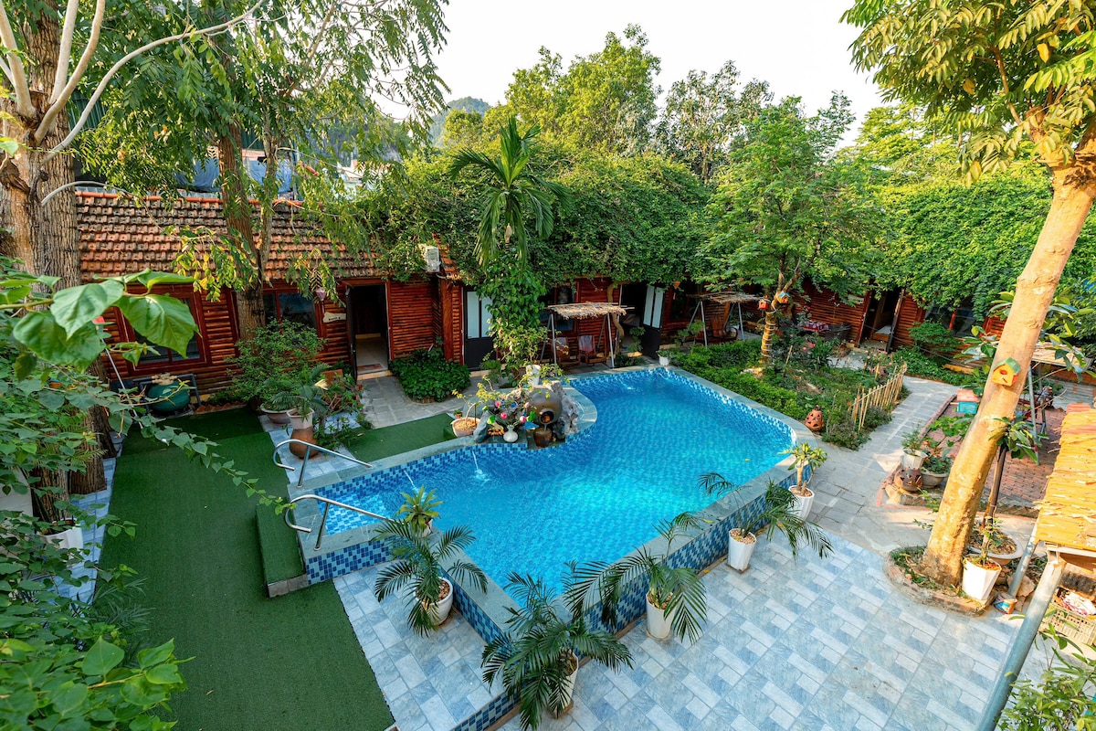 Our bungalow is located in the center of Tam Coc, within walking distance to restaurants and cafe, yet quiet and peaceful, away from street noise. Surrounded by a green garden, the space stays naturally cool and relaxing. Our outdoor swimming pool is refreshing and perfect for hot days. We also offer convenient services such as transportation (bus, train, private car), laundry service, tour arrangements, and motorbike rental.