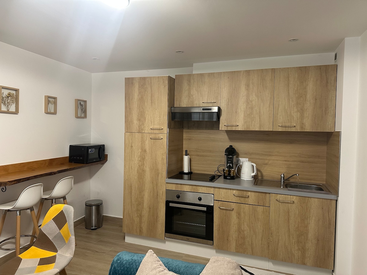 The "La Chabotine" apartment is a newly renovated 2-room apartment on the second floor of a small 2-story building, very functional and equipped down to the smallest detail. Separate and insulated bedroom with shutters for better sleeping comfort, not to mention the king size bed with its super memory foam mattress. Ideally located, with all amenities nearby and free parking in front of the building. Self check-in possible for maximum flexibility.