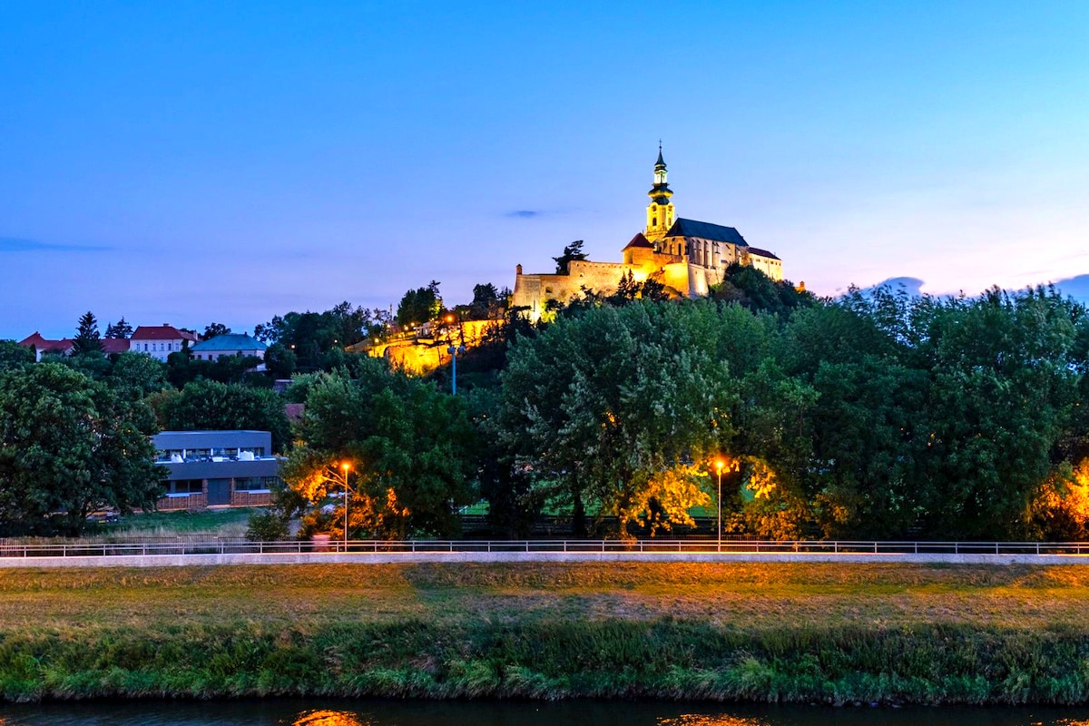 Plne vybavený apartmán s výhľadom na rieku a Nitriansky hrad s parkovaním v krytej garáži, je súčasťou obchodného centra PROMENÁDA, v ktorom sa nachádzajú reštaurácie, potraviny, módne obchody, nabíjacia stanica elektromobilov a je vzdialený iba pár minút pešo od historického centra mesta. Futbalový a zimný štadión je vzdialený 10min pešo. Výstavisko Agrokomplex je vzdialené 5min autom. Kľúče je potrebné si vyzdvihnúť na inej adrese v blízkosti ubytovania.