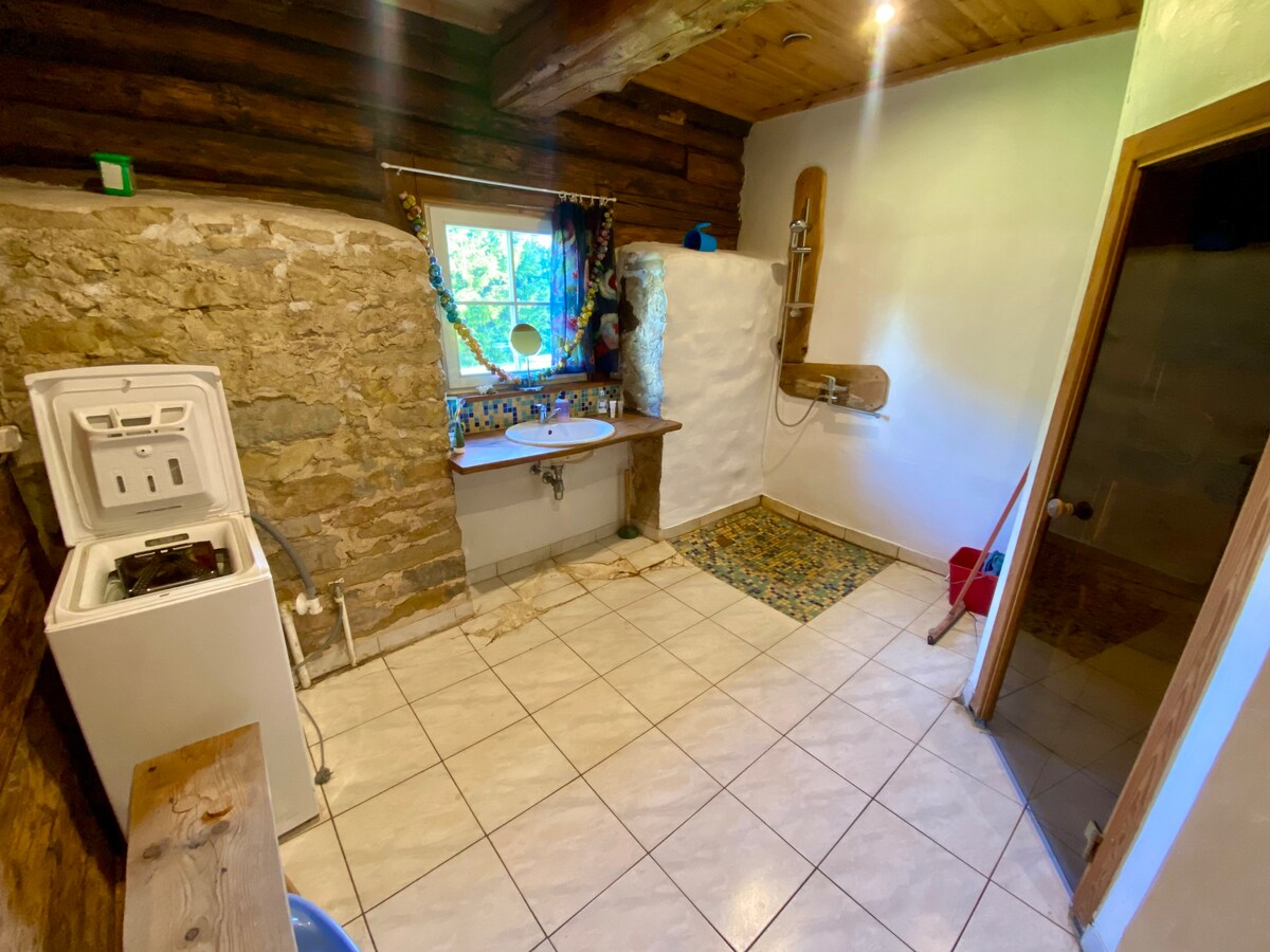 Enjoy extras: hot tube (€39-59€), sauna (€30), cocktail bar, hookah (€20), hanging tents for unique sleeping experience (€15) caravan for trips, and fresh seasonal garden products. The cozy cabin sleeps 4 (double bed 120 cm+ sofa bed), extra mattress for 5th guest. Kitchenette includes cooking essentials, coffee, and spices. Fireplace and air heat pump (AC) for extra comfort.
