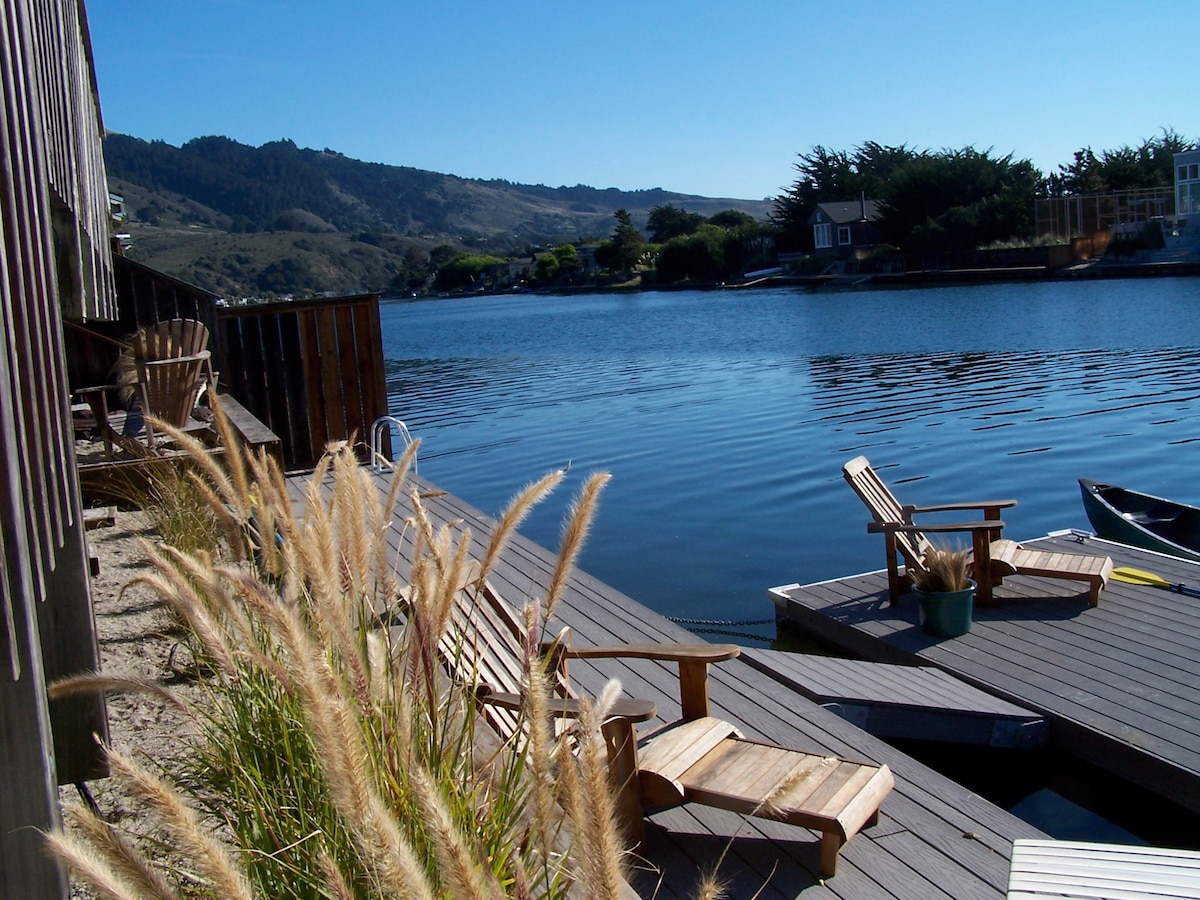 This beautiful 4 bedroom 2 1/2 bath home with 8 foot high windows near the entry gate on the lagoon has spectacular views of the Seadrift Lagoon and Mt. Tam. Cozy and warmed by the sun until late in the day, this home has the full beach getaway feel.