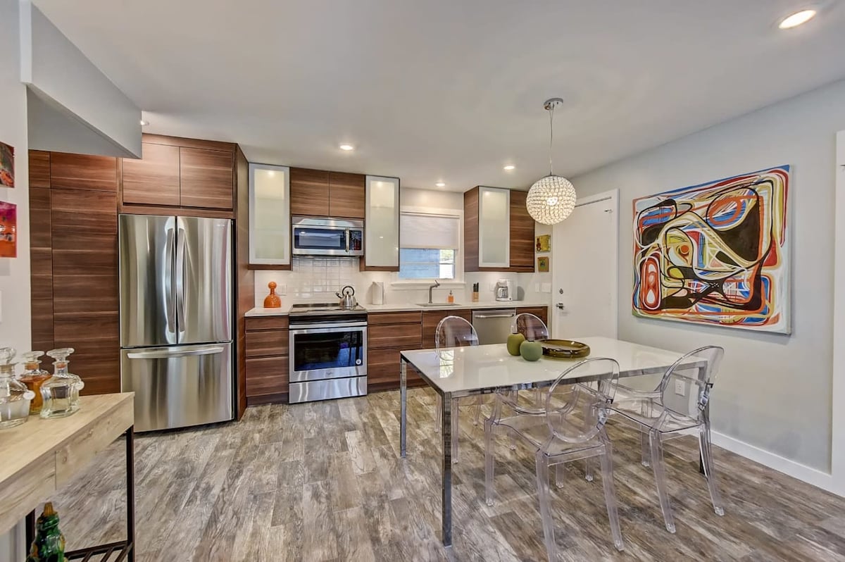 Kick back in this funky, beautifully styled mill house just 2 blocks from everything NoDa’s Arts District has to offer! This 2-bed 1-bath home has a King bed, a Queen and a Full size murphy bed to sleep everyone in your party comfortably. Large, accommodating kitchen, 65” living room TV, and a fenced backyard paradise with deck, outdoor dining area & fire pit. Other than the Dwel sister property next door, you’d be hard pressed to find a place this nice so close to all the action!