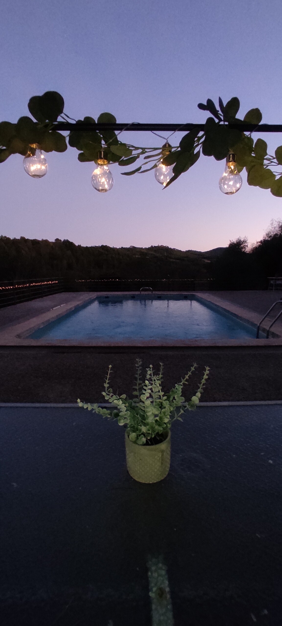 Create unforgettable memories in this 560 m2 "retreat/spa" accommodation ideal for disconnecting from the world. 6 fireplaces for romantic evenings. 3 terraces and patio with pool with part of the benches under water for chill and deeper part to bathe well with outdoor shower. 4 double bedrooms with individual bathroom. Library. Quiet and away from the city. Live country life with all the luxuries and comfort in style. Pre-Pyrenees. Cool nights on the terrace with a fireplace