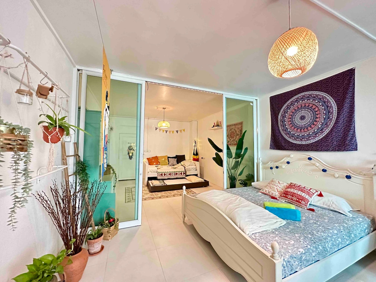 Welcome to our secret spot where we offer an entire place (King sized bed + 2 twin beds). We’ve basically turned this empty spacious room into a guest room for people who are keen to explore new cultures, lifestyles, share some interesting cross cultural stories, and last but not least, have their own privacy. Get a taste of local life in our place that is secluded from the hectic Bangkok city yet easily accessible to many attractions that the city has to offer - the best of both worlds!!