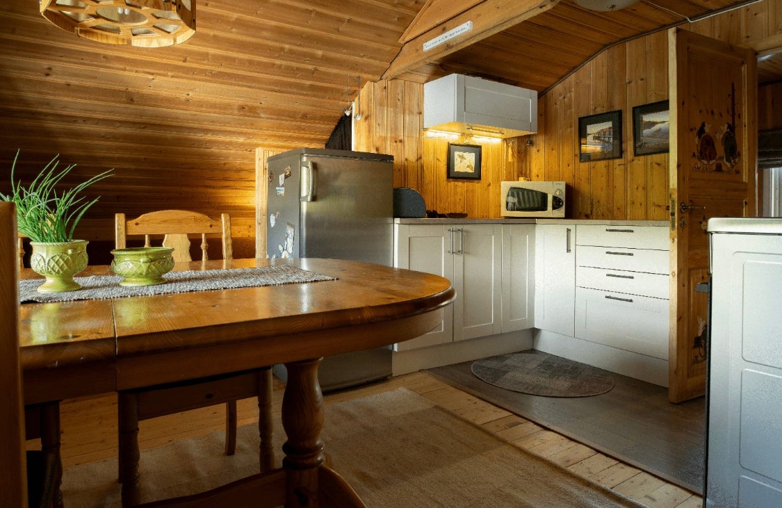 Cabin with living room, kitchen and bathroom. One bedroom with double bed and loft with mattresses. Sofa bed in the living room. Sleeping arrangements for 3-4 people. Heating cables in all floors and wood burning. Wi-Fi. Short distance to Reisaelva, mountains and lakes, and approved snowmobile trails. You can experience dog sledding in untouched wilderness under a sky filled with Northern Lights. See info in guides. If you want to cook outside or just enjoy the silence around the campfire, you can use our barbecue area under the roof by Reisaelva.