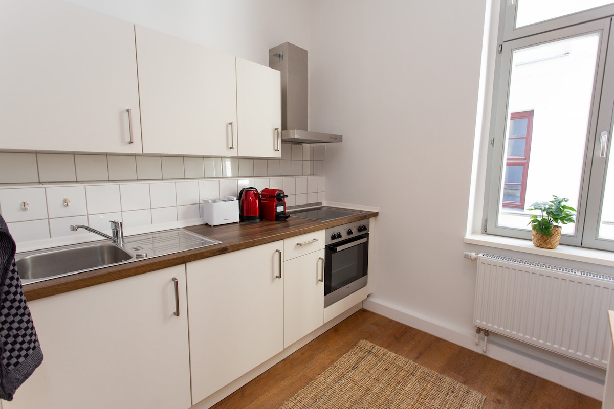 “Super nice & spacious apartment in the best location I can imagine for Halle . Enchanting view & quiet despite the central location . Everything is very stylishly furnished and the apartment has a wonderful bathroom. Everything was very uncomplicated, despite the spontaneous arrival & extension. Thank you for that ! Very friendly customer service."-Sandra “Charming apartment in the heart of Halle with everything you need for a little break :)” -Luana