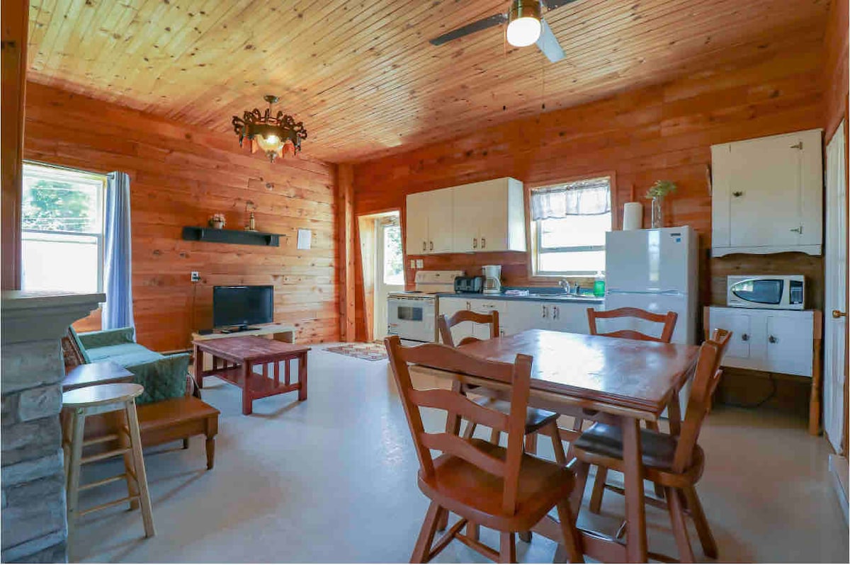 Perched on a hillside overlooking the Bay of Fundy, this unique lighthouse-shaped cottage offers a cozy one-bedroom retreat that captures the spirit of coastal living. The top-floor living room is the highlight, with panoramic windows framing sweeping ocean views and the nearby sea caves. From this elevated space, guests can relax and watch the ever-changing tides. A short walk down the hill leads directly to the beach.