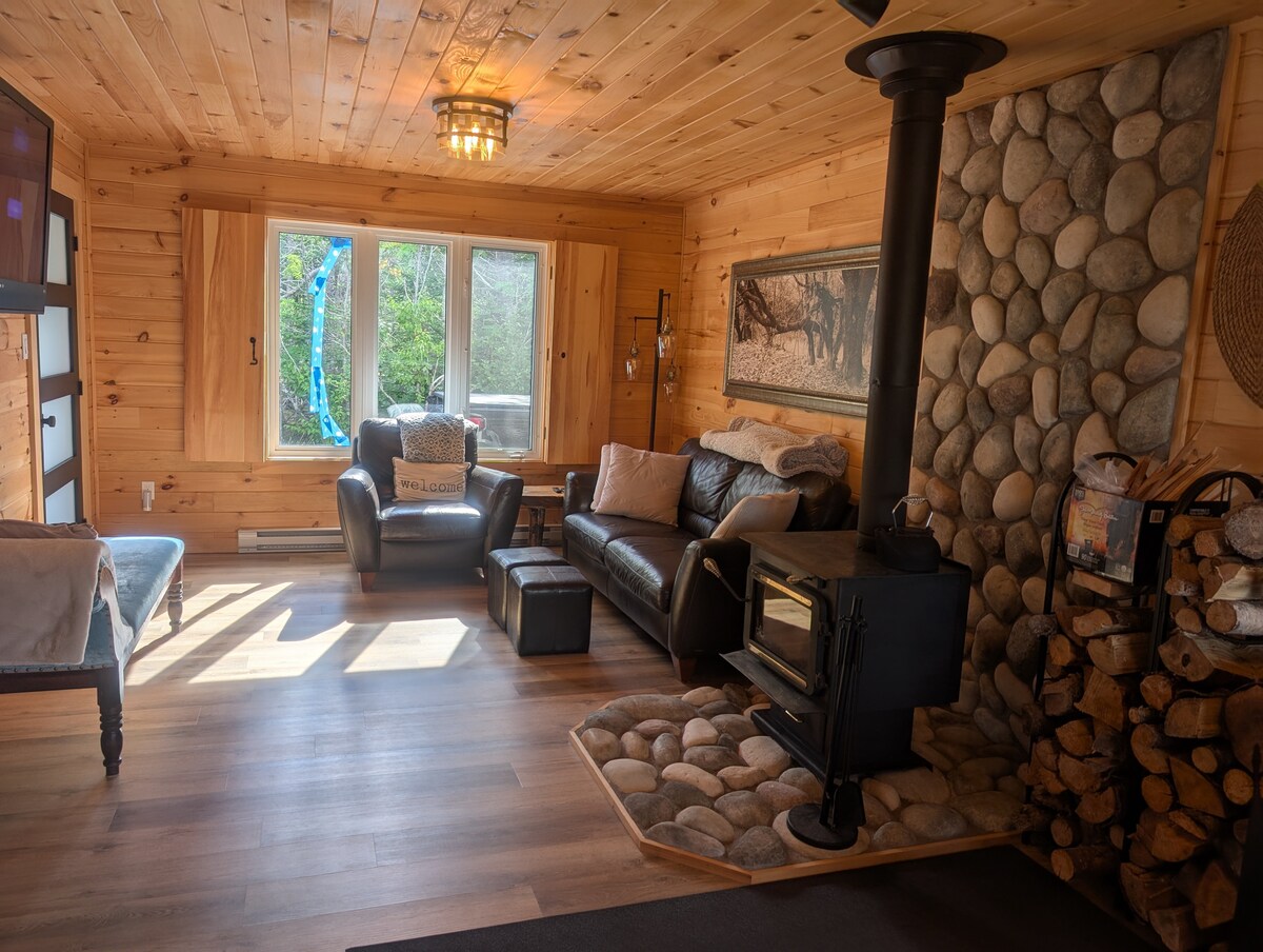 Only 35 minutes from the city of St. John’s, this Enchanted little cottage is a beautifully handcrafted retreat with shiplap and pine throughout. Nestled among the spruce trees with pond frontage on Enchanted Pond. The cottage is located on route 90, Salmonier Line 0.5km from the Irish Loop Campground and Store, 5 minute drive to Salmonier Nature Park, 15 minutes to the town of Holyrood and 10 minutes to The Wild’s Resort & golf course.