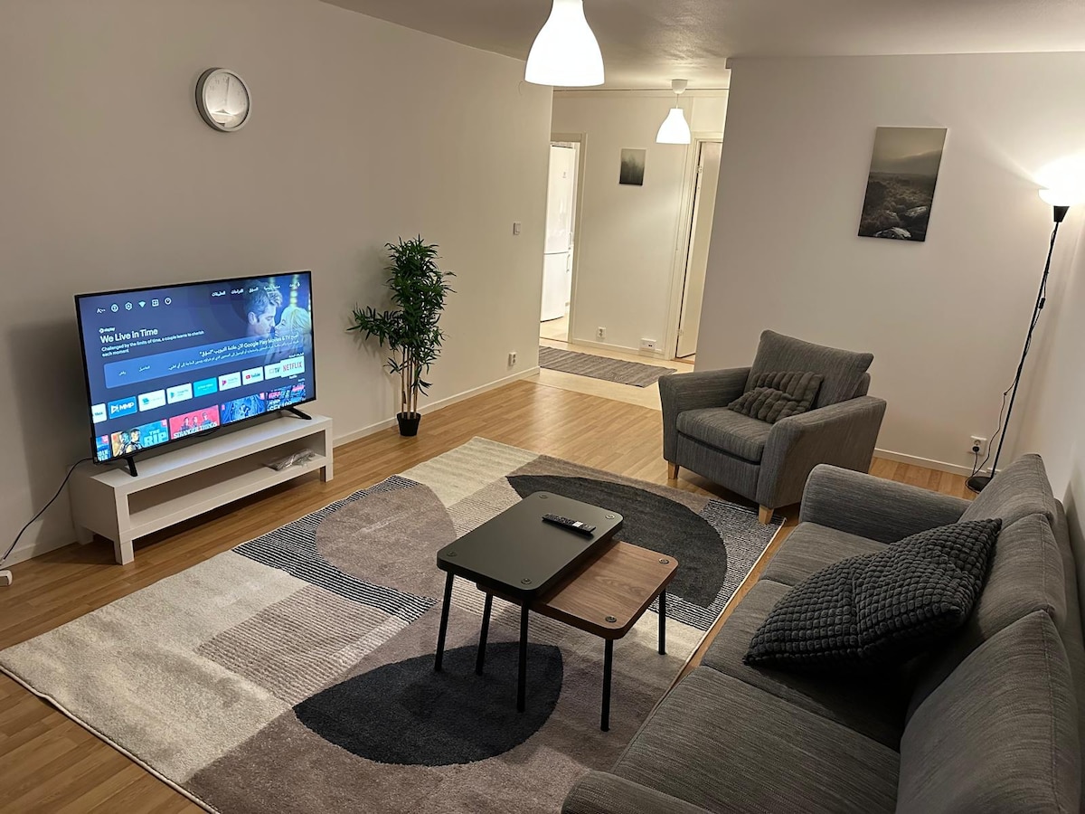 Fully-furnished, newly renovated flat complete with comfortable bedding, towels and equipped kitchen. Bathroom with overhead shower and washer/dryer. 250 Mbs Wifi, Flat screen TV with large range of digital channels in HD as well as access to Netflix / HBO etc. via Apple TV. Water, electricity and heating included. Walking distance to Norrköping C, train/bus station (900m) Walking distance to Norrköping for shopping (2km) Tram stop within 100m Supermarket within 150m Folkparken park within 150m.
