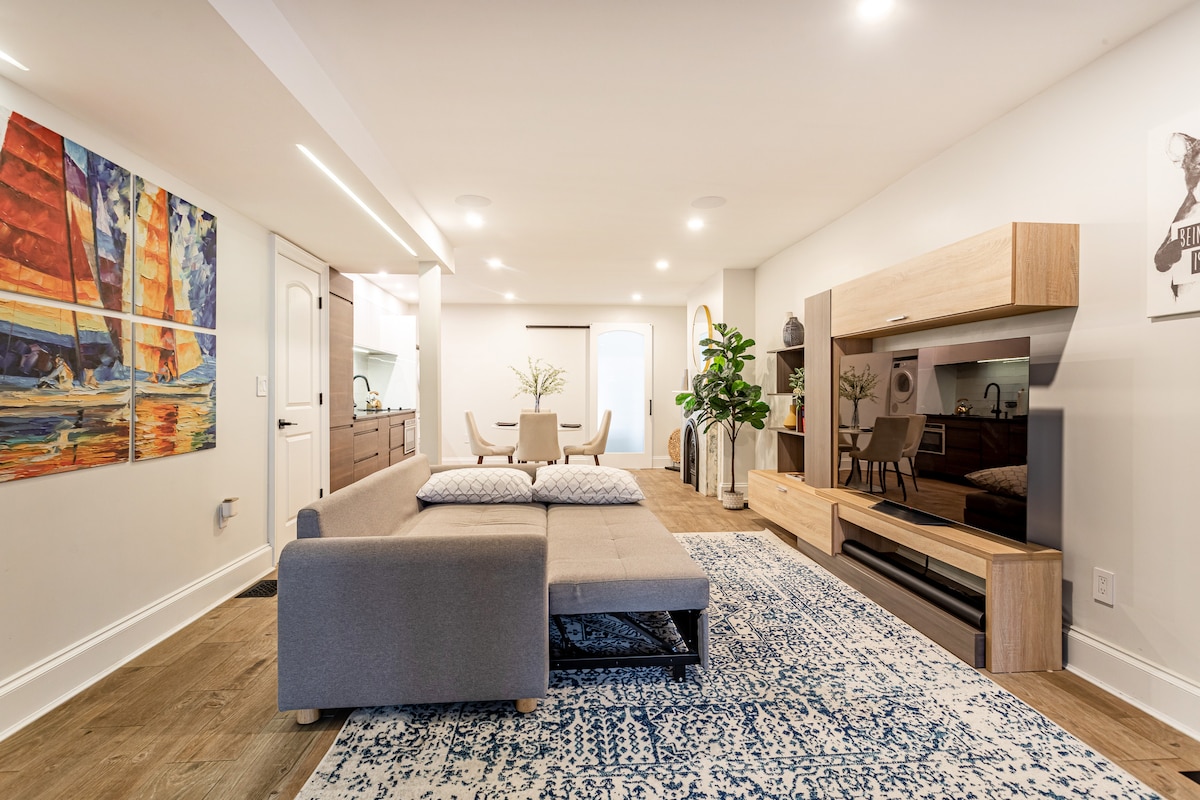 Spacious, impeccably clean apartment with private entrance and yard. Experience your visit in style in this modern, cozy split-level studio in the heart of downtown Jersey City-- close to area airports and 7 minutes to NYC. A perfect location, centrally located and within walking distance of stores and restaurants. Beautifully furnished and meticulously cleaned and sanitized top to bottom between guests. Truly the perfect place to make your next visit a smooth, happy, and memorable one.