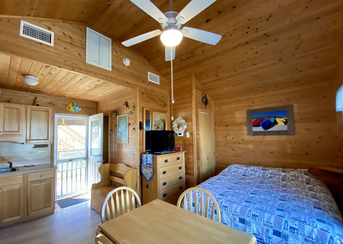 Take in the rustic, fairy tale vibe of this custom-made treehouse in the midst of towering white oaks. Recline in a rocking chair and watch the sunset over the mountains, or try your hand at some stargazing from the comfort of the deluxe double bed. Please be aware there are times when heavy winds will cause the treehouse to sway/creak as it is built solely in the trees. It is engineered for this movement.
