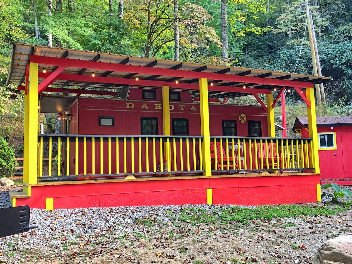This is such unique experience! A one of a kind Caboose Camper by the creek. Perfect for 2 adults and 2 kids. has its own deck to sit outside and listen to the Creek, along with a large 3 person hammock stand. On the property you will also find a charcoal grill, firepit and shared laundry room when needed. This is in such a perfect spot! Less than 1 mile from the Great Smoky Mountains National park entrance and only a couple of minutes to downtown Bryson City,NC.