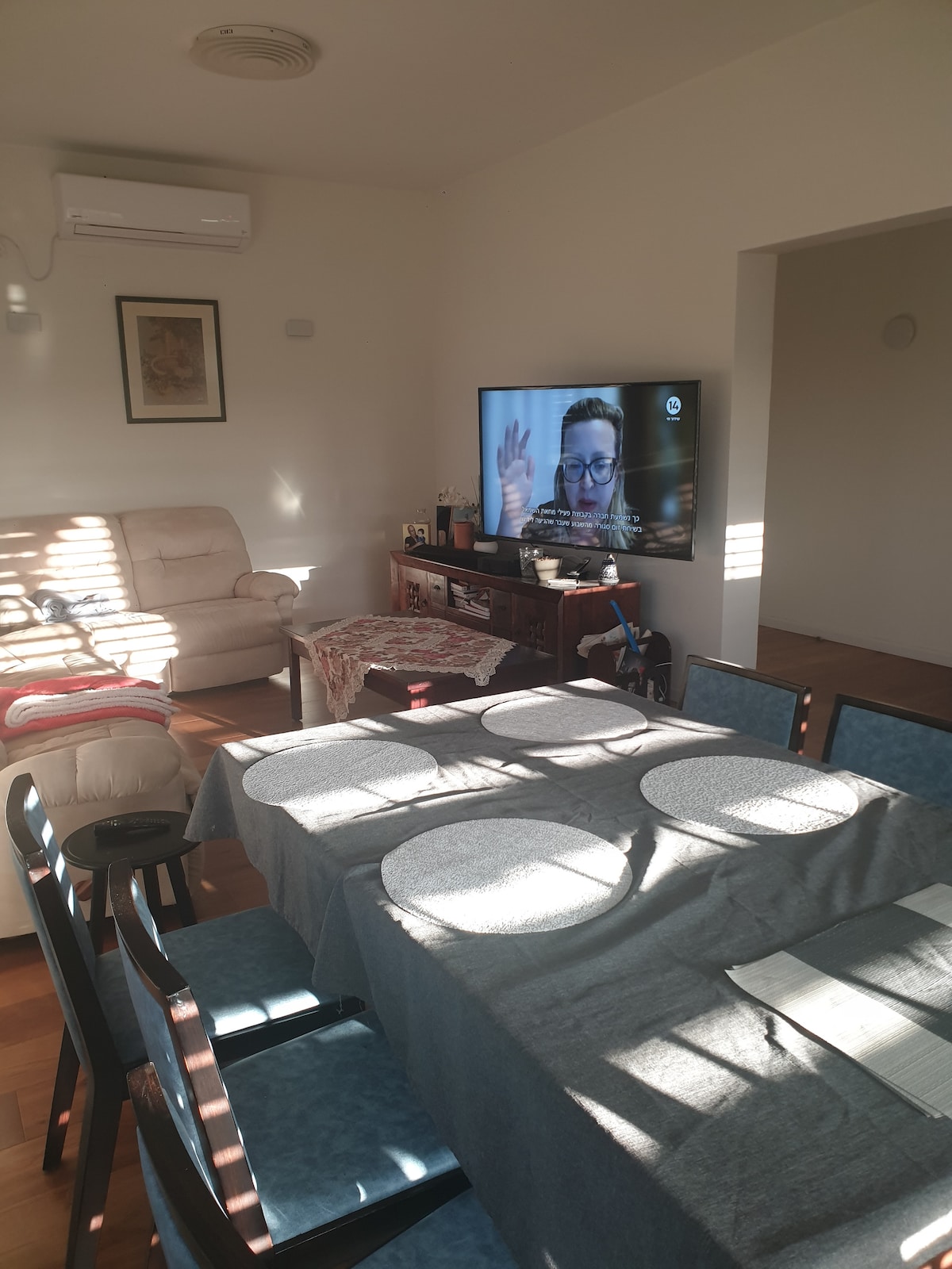 Welcome to our home A huge penthouse about 200 meters on one level with an open terrace with a magnificent view of the Hermon, Ir Yarok and the Hula Valley. Fully equipped kitchen (Ninja grill, oven, Tami 4, coffee machine, Ninja blender, microwave, large refrigerator) A huge game room full of toys for all ages. A unique dining area with a view of the Hermon. A huge table opens to 4 meters, amazing for Shabbat meals. A unique workspace with a Dr. Gab chair and a laptop docking station. Home Theater\ Netflix\ Disney Arranged parking Step-free access. Large elevator. The apartment is a perfect location for travelers in the north and is very suitable for families.