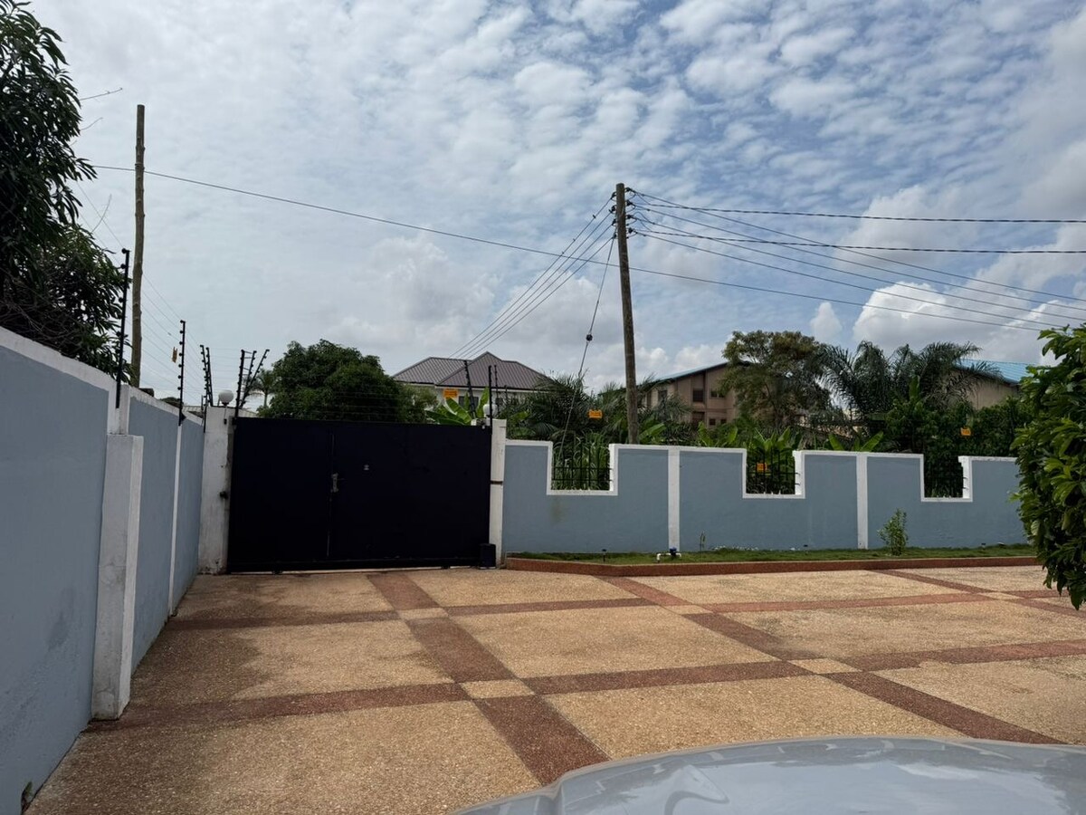 Relax with the whole family at this peaceful place to stay. Fully Furnished for self catering DSTV +Wifi +Smart TV It has standby generator in case of power cut. Fully air conditioned Electric gates Spacious parking Electric security fence. Nice green grass. Care Taker on standby Close to Gym and other amenities including palace Mall Papaya and KFC. Also 15 minutes to Main Accra Mall.