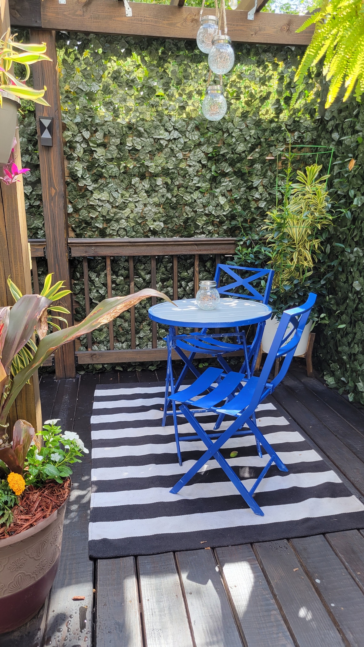 Your private oasis awaits, complete with a swaying hammock, lush palms, and a rustic bistro table perfect for morning coffee or dinner under the stars. Inside, sink into your king-size bed for ultimate comfort. Relax, unwind, and enjoy a peaceful retreat designed for memorable moments.