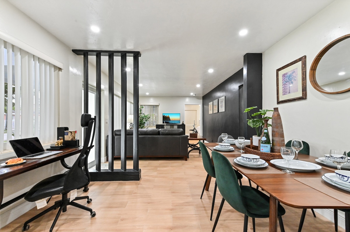 Spacious 3-bed, 2-bath North Miami Beach retreat blending modern convenience with artistic flair. Smart home controls, calming contemporary design, and cozy living spaces make it perfect for families, groups, or remote work. Explore nearby beaches, parks, dining, and shopping. Ideal for weekend getaways or extended stays, experience comfort, style, and a serene, convenient “home away from home.”