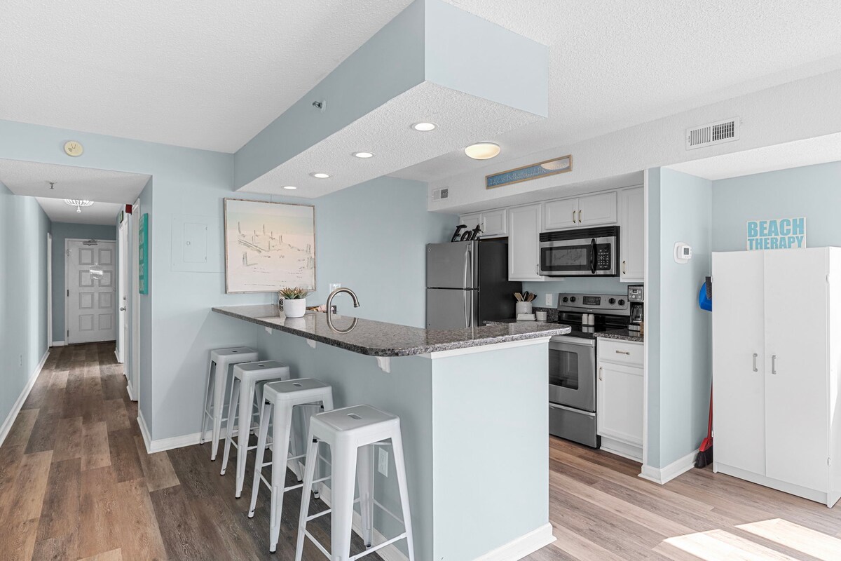 Search no more… we have it all! Enjoy this spectacular, Ocean View, newly remodeled home, equipped with a chef’s kitchen, hotel luxury pillow-top beds, and high-end finishes throughout! Take in the sunrise on your Ocean View Extra-Large balcony furnished with an outdoor sofa, table, and chairs. Resort amenities include a wide secluded beach, pools, and so much more. And the cherry on top... you’re just a short walk away from Myrtle Beach’s famous Barefoot Landing Entertainment District!