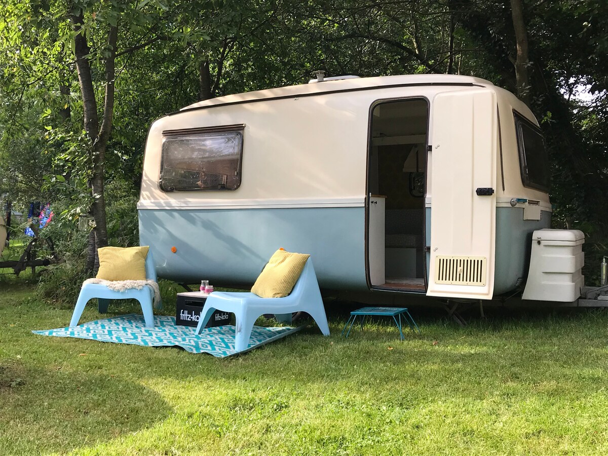 Camping holiday in the themed "Vintagepofe" caravan