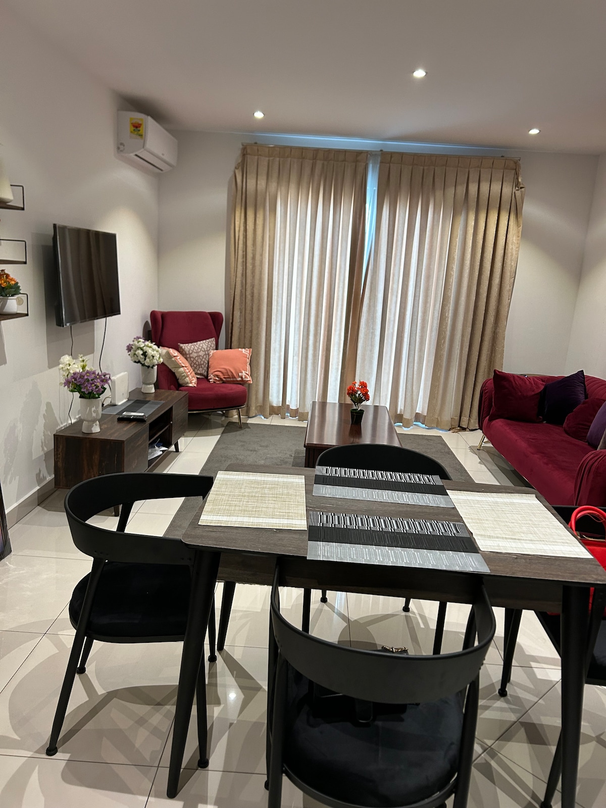 Not a shared apartment Chilling AC In All Rooms Mini Gym Office Workspace Available Parking Space Dust free (Tarred Road) Fast Wifi Connection Popular Shopping Centers Nearby 16mins Away From International Airport (Kotoka) 18mins from Tema Harbour Nearby Recreational Centre for Family Holidays Gated Community with Security Men Serene and Beautiful Environment for Relaxation