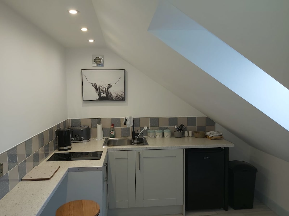 Escape to the countryside and relax in this calming space with unspoilt country views. This newly built (2022) open-plan studio apartment is located near Arddleen, Llanymynech in Mid Wales, perfectly positioned for exploring Welshpool, Oswestry, and Shrewsbury. Ideal for walking, cycling, visiting family, or enjoying a relaxing short break. Situated above a detached garage at a private family home. Shared driveway with the main house. Parking for 2 cars.