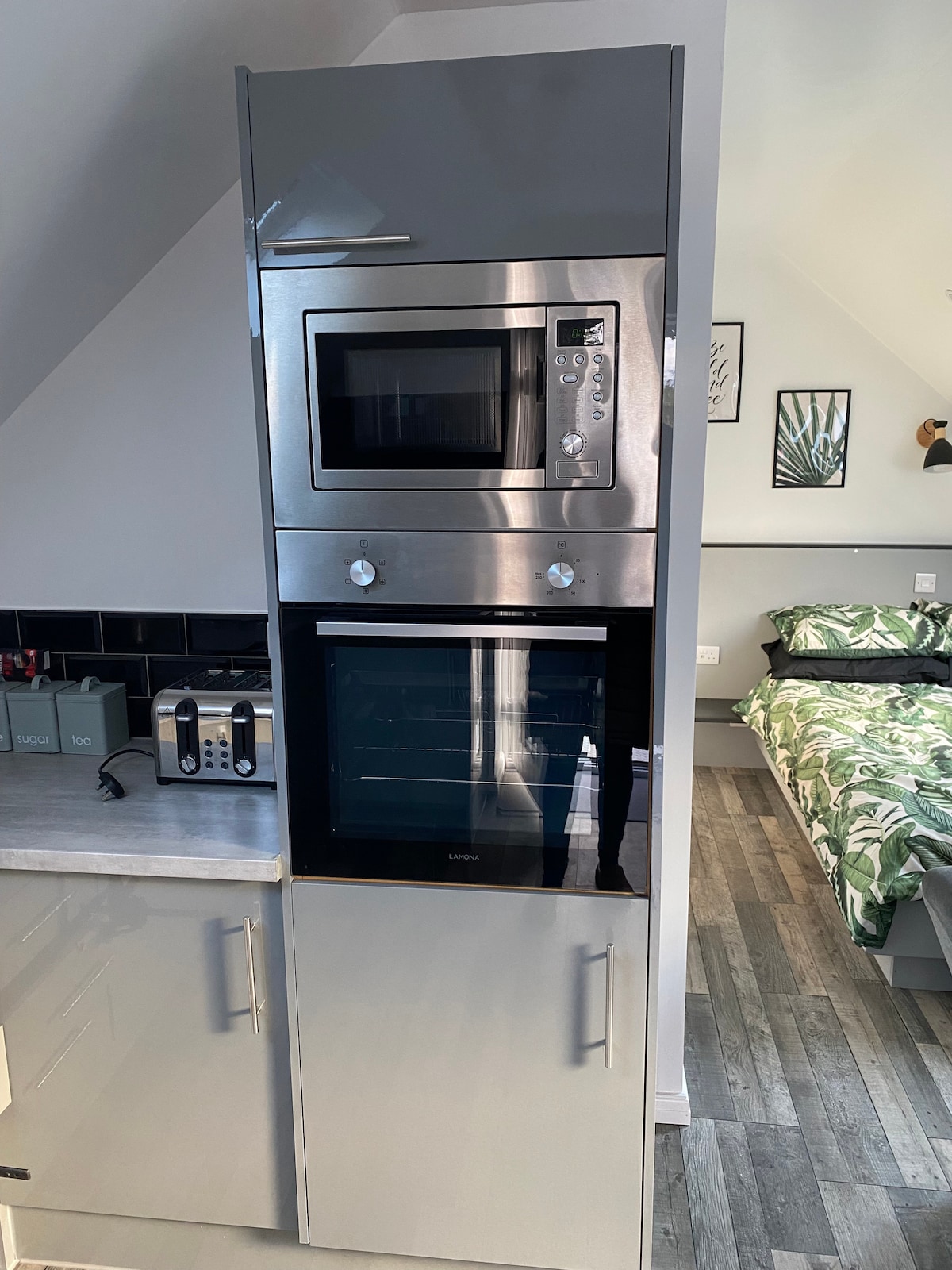 A cozy, lite, warm studio with a taste of the seaside.fully fitted kitchen, separate pvt bath & shower. central heating, smart tv/ netflix, wifi Street parking, 3 min railway stn shops & seafront. The studio Velux Lites are fitted with both nets & blackout blinds. The kitchen Hob is of the induction type and has two rings, we have recently added a good size Air Fryer works just like and oven.. You might like to view our CONWY SUITE list