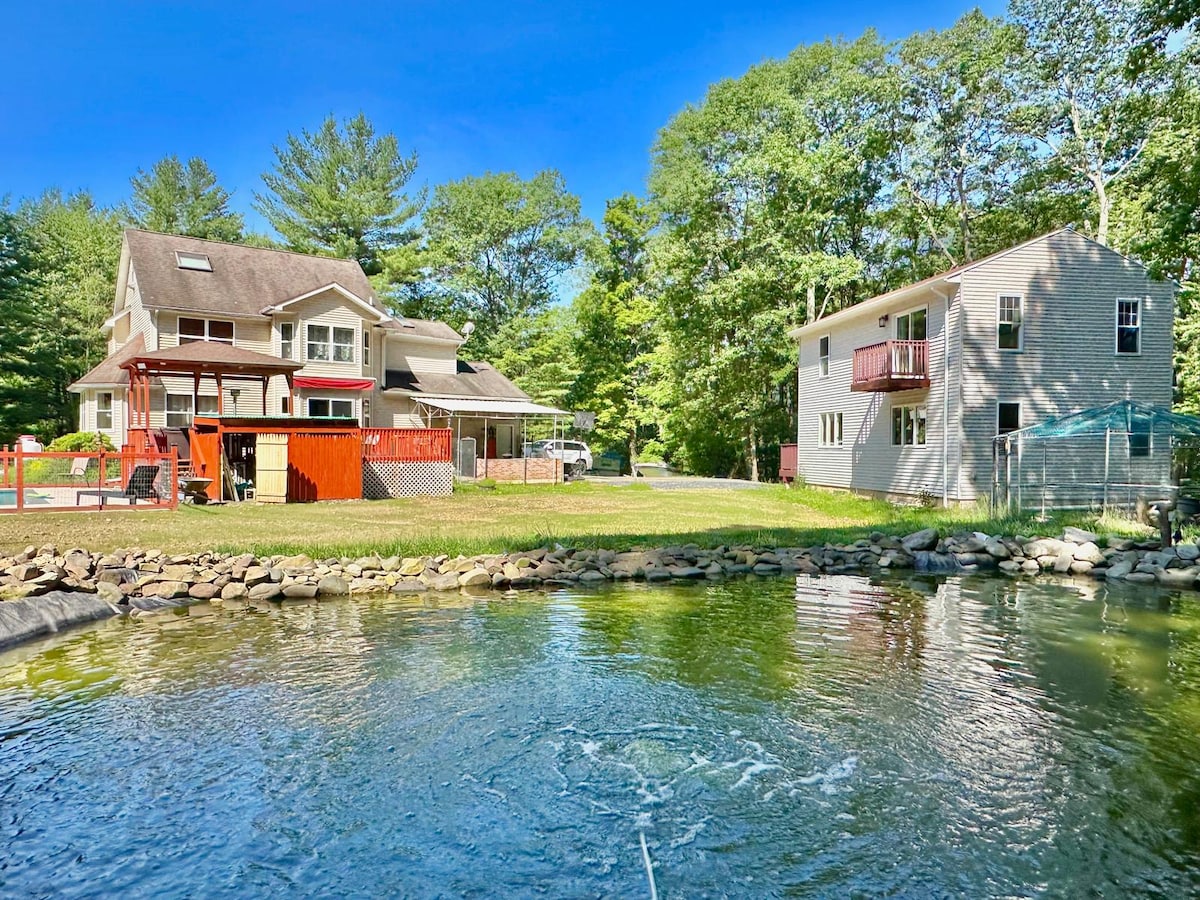 Welcome to Your Serene Escape in the Poconos Tucked away in the heart of the breathtaking Pocono Mountains, our charming 3 Bedroom/ 4Bathroom guest house offers the perfect blend of rustic elegance and modern comfort. Surrounded by whispering pines, this cozy retreat is a haven for those seeking peace, nature, and a touch of luxury. Whether you're here for a romantic getaway, a family adventure, or a solo retreat, our guest house is your personal sanctuary in the Poconos