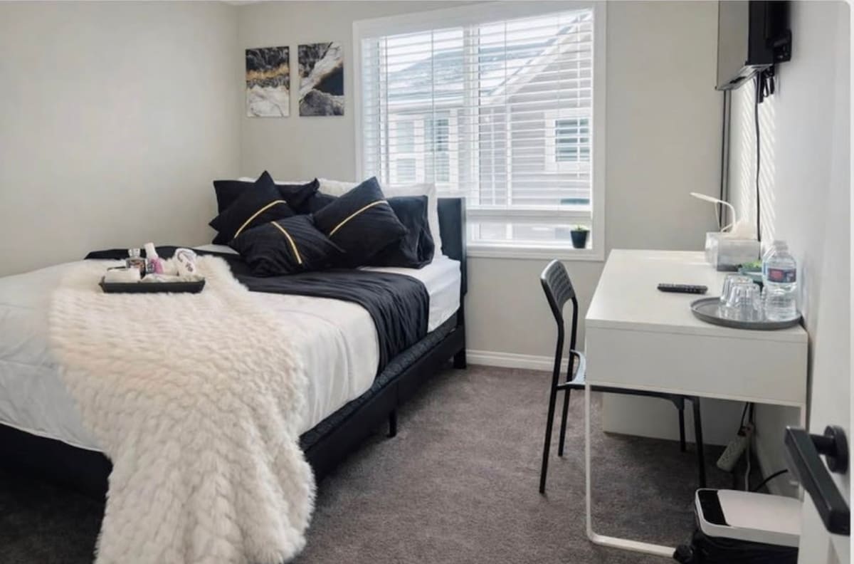 Enjoy a peaceful retreat just 5 minutes from West Edmonton Mall, with top shopping, dining, and entertainment like Galaxyland, Ice Palace, and an indoor waterpark. 💤 Comfort & Convenience: ✔️ Queen-size bed for a restful sleep ✔️ Fully equipped kitchen for easy meals ✔️ Smart TV, Netflix & high-speed Wi-Fi ✔️ Private entrance for total privacy ✔️ Free parking in a safe neighborhood Perfect for business, shopping, or a weekend getaway. Book now! 🏡✨