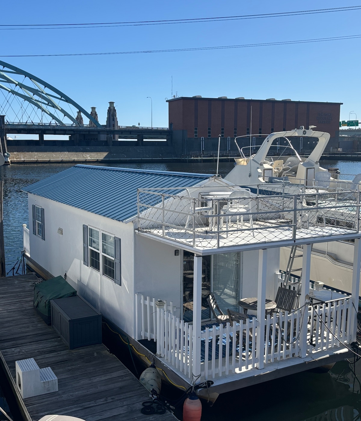 Discover Providence from the comfort of your own cozy houseboat! Tucked away in a secure and scenic marina, our floating home offers all the modern amenities you need, including cooling and heating. Located within the Hurricane Barrier, this tranquil spot ensures both safety and privacy while offering a unique waterfront experience. Enjoy the entire boat to yourself, with easy access and stunning views right off Interstate 195. Make your stay unforgettable with this one-of-a-kind retreat!