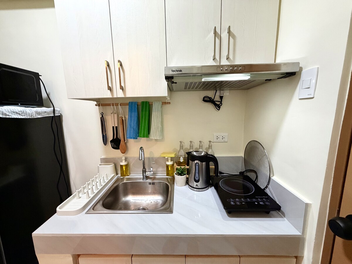 Escape to the intimate serenity of Skyloft at SMDC Trees Residences, a carefully curated urban haven. Experience a well-deserved retreat in this elegantly designed studio suite. The unique and aesthetic decor, complete with a bar counter, a game console, and a loft bed beside a panoramic window, provides the perfect setting for uninterrupted stargazing. Reconnect with your partner or share this tranquil haven with a dear friend. Book now and make memories! ♥️🌥️
