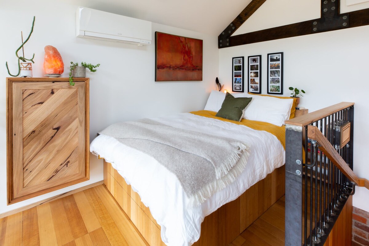Wake up to stunning mountain views and abundant wildlife outside your door in this bespoke Designer Eco Tiny House. You can soak under the stars in the gorgeous outside bath. Enjoy the peace and privacy of this property whilst only being 8 km from Halls Gap’s cafes and restaurants. You will be able to disconnect and unwind without sacrificing comfort in this romantic stylish space.