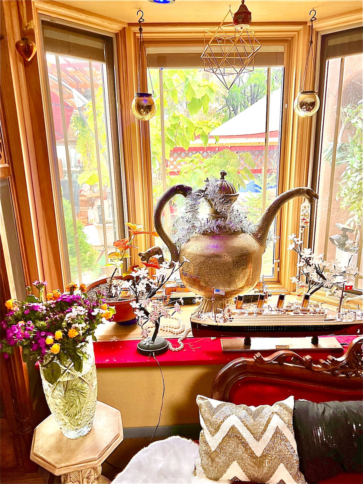 A collectors paradise in the middle of Santa Fe, near Meow Wolf and down town. Perfect for those that like off beat fun and humor in their stay. River walk is right out the front door and WE ARE DOG FRIENDLY WITH FENCED IN FRONT YARD. 2 queen sized beds in private bedrooms and cozy oversized couch in the Living room. Model ships, trains, and Alice n wonderland feel to the listing plus a bar outside for anytime lounging. Suited best for the younger eclectic and open minded people.