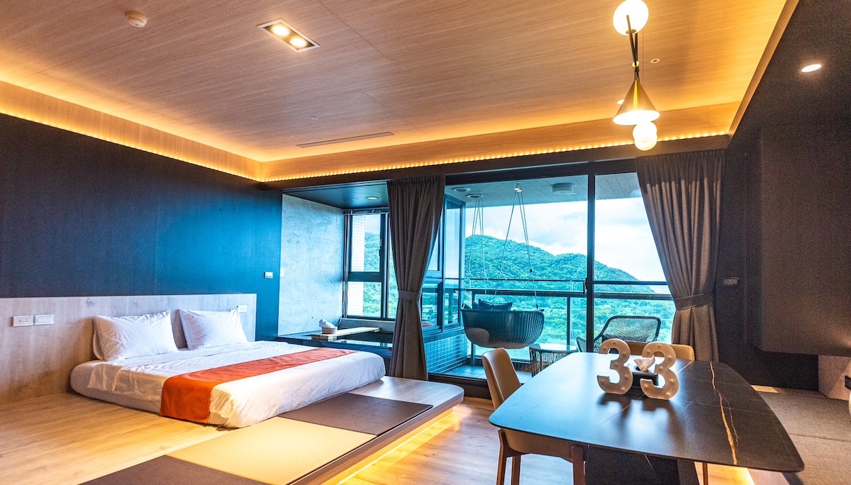坐落於熱鬧的頭城車站旁,33の宿泊可遠眺龜山島和美麗的山景,為您打造舒適寧靜的居住空間。有無邊際泳池、免費健身房、室內高爾夫球場和KTV等豐富設施,客房內設有烹飪設備,也可找私廚服務和頂樓BBQ。步行即可抵達頭城運動公園,跨越橋梁即達頭城市區。客房更設有美人湯溫泉和可調控的LED氣氛燈,營造出極致放鬆的渡假環境,為您帶來絕佳的休息與放鬆體驗。