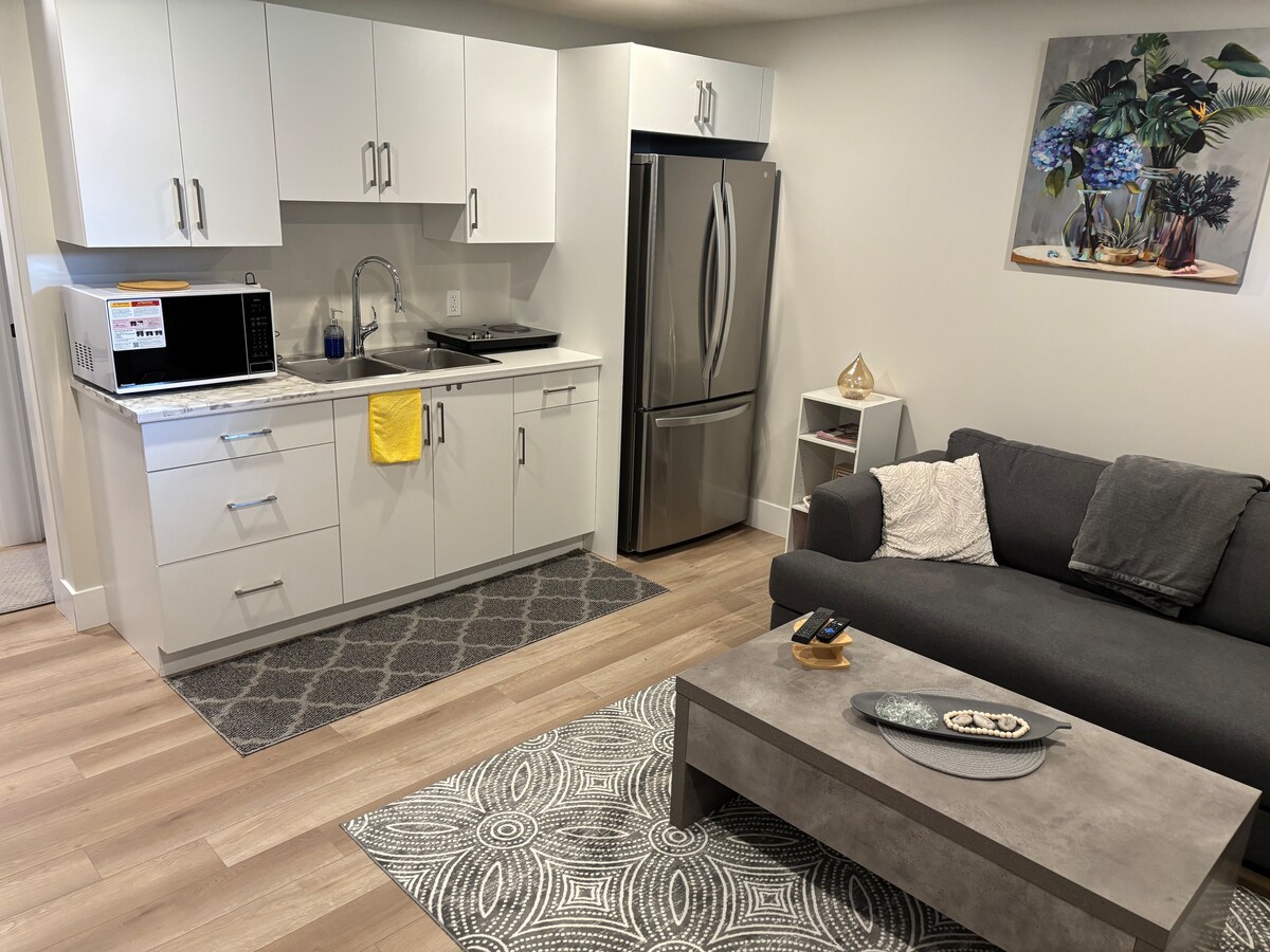 Step into a stylish one-bedroom basement suite designed for modern comfort and complete privacy. Enjoy keyless entry, air conditioning, a fully equipped kitchen, washer and dryer, Netflix on Roku TV, and a spacious living area. Perfect for couples or solo travelers, just minutes from the airport with easy access to local attractions, shopping, and dining. Relax in a spotless, comfortable retreat with all the conveniences of home.