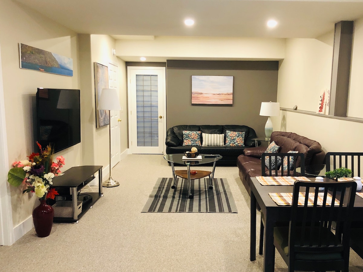 Welcome to your brand-new, stylish basement suite! Featuring a private side entrance and a warm, inviting vibe for all travelers. Families: A spacious, comfortable base with thoughtful touches for relaxing and making memories. Remote Workers: Quiet, private space for focus and productivity. Your peaceful retreat. Friends & Travelers: A modern, delightful alternative to hotel rooms, offering comfort and style. It's the perfect place to relax, unwind, and feel at ease.