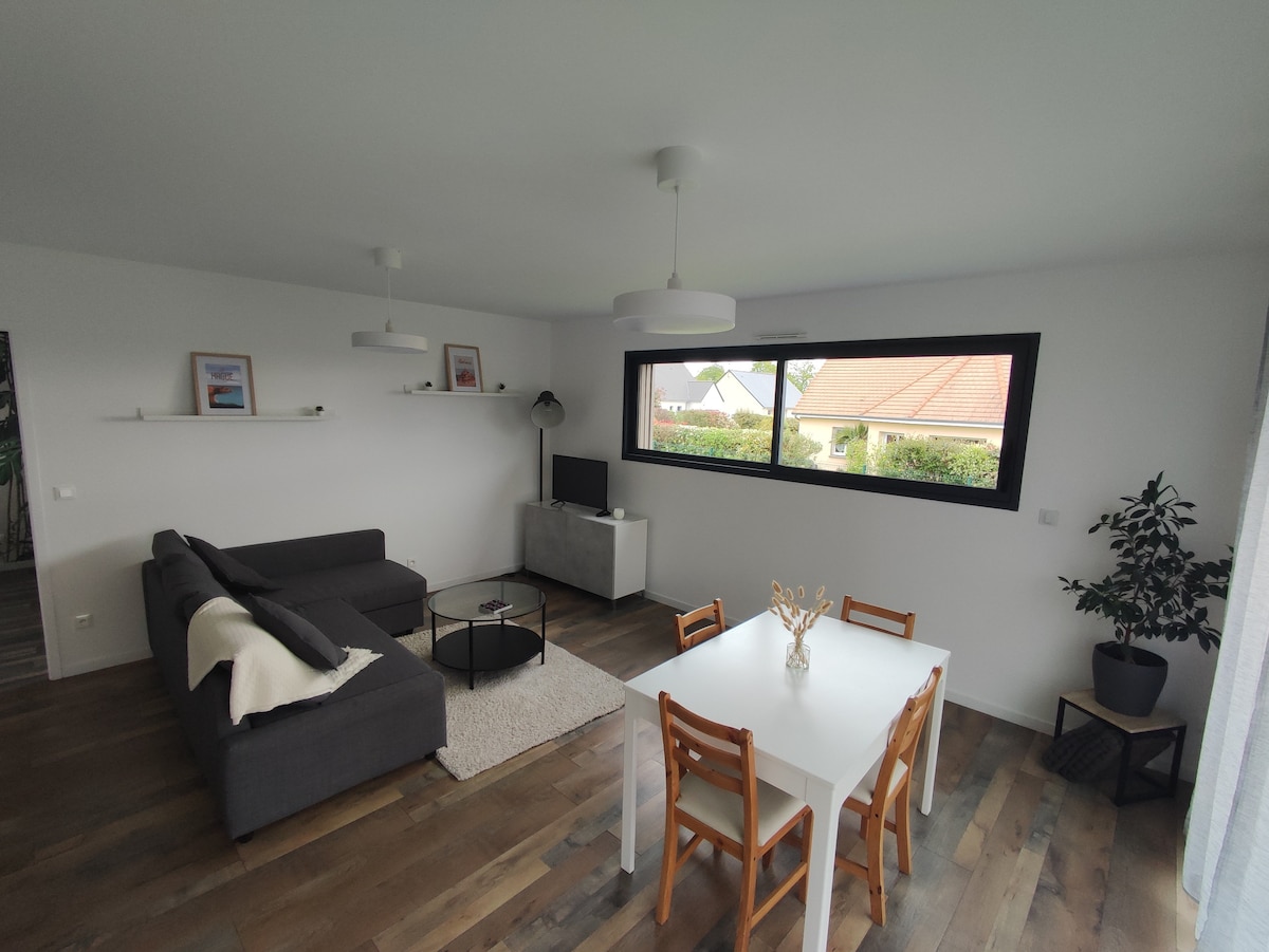 Ground floor studio, 25 m², in a country house with independent entrance, equipped kitchen, shower room accessible to disabled people. 800 meters from the beach, facing the Channel Islands, at: - 1 hour from Mont Saint Michel- - 30 minutes from Granville - 45 minutes from the D-Day Landing beaches - 15 minutes from Coutances Parking in front of the studio