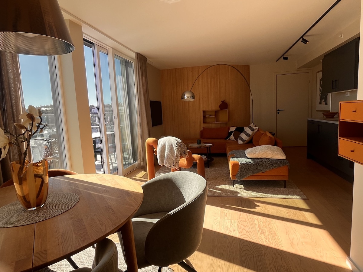 Brand new and top modern apartment/suite with all amenities and high standard. The apartment is located on the 2nd floor in a detached house in a well-established villa area. Located close to shopping center/grocery store. Large and sunny veranda. Access to outdoor area, garden. We rent two units in the same house. If you need more beds, or if you travel with friends you want to have nearby, this can be arranged. A total of 9 beds, divided into two rental units.