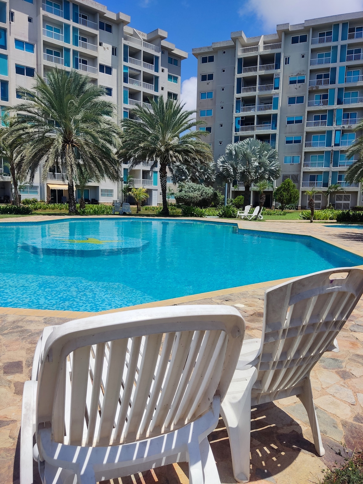 ¡Un alojamiento GoUppers! - ¡Sin comisiones de Airbnb: lo que ves es lo que pagas! Apartamento moderno y recién decorado en Costa del Mar, frente al C.C. La Vela. Ideal para 4 huéspedes, con dos habitaciones matrimoniales, aire acondicionado en todos los ambientes, balcón con vistas al mar, piscina y la marina. Edificio de lujo con vigilancia, excelente wifi, piscina, parque infantil y áreas sociales para una estadía cómoda y segura en Margarita.