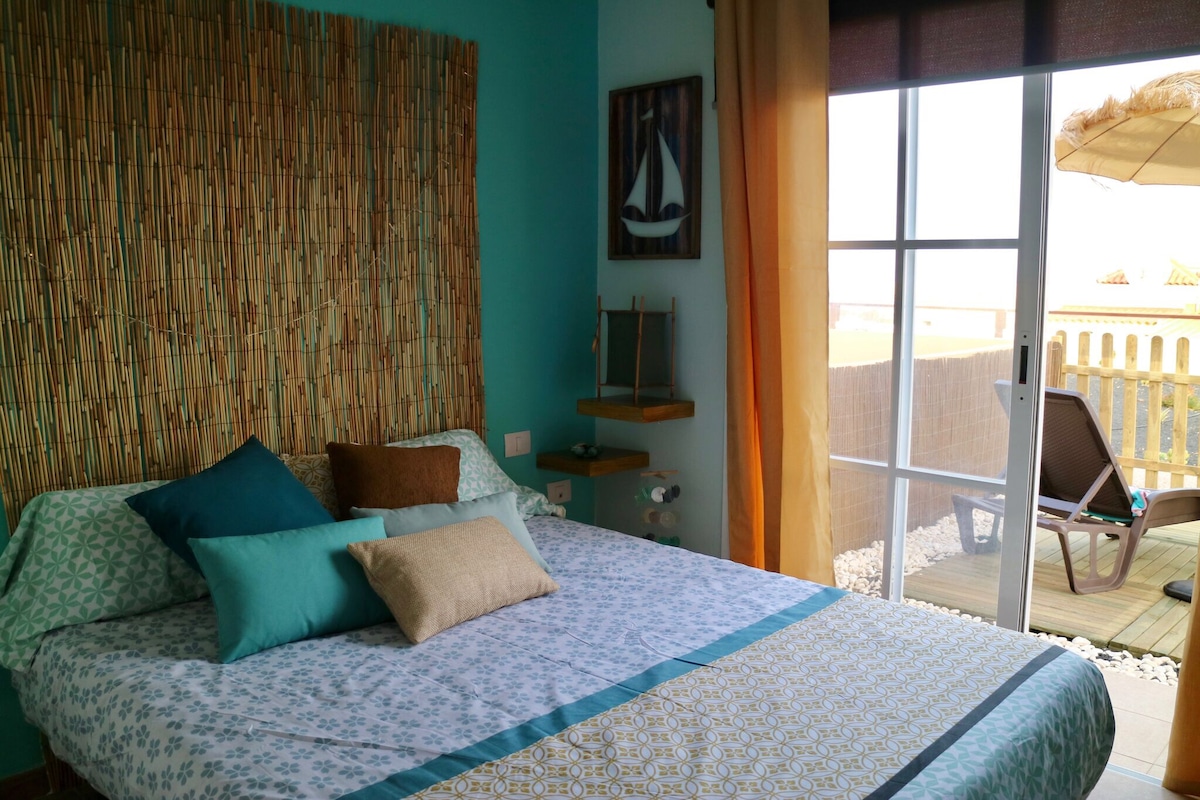 Ola Cotillo! is an apartment located on the seafront, in the fishing village of Cotillo, north of the island of Fuerteventura. Fully equipped and distributed over two floors, it has a kitchen with everything you need, a living room with a sofa bed, and a smart TV. A bedroom with a comfortable bed, a full bathroom, and a terrace with an ocean view. Upstairs is a solarium where you can enjoy the best sunsets watching, listening to, and smelling the sea, an experience that will test your senses.