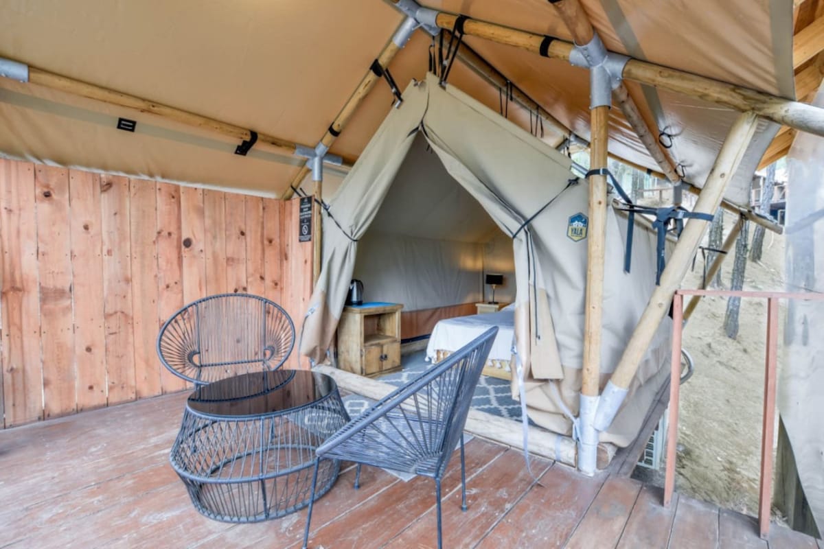 For nature lovers! Situated in a dreamlike setting surrounded by forests and mountains, this luxury tent offers a unique experience of comfort and tranquility. Whether you're seeking a romantic getaway or a solo adventure, this luxury tent is the perfect destination for an unforgettable glamping experience. Come and disconnect from the routine and immerse yourself in a glamping experience in the heart of nature!