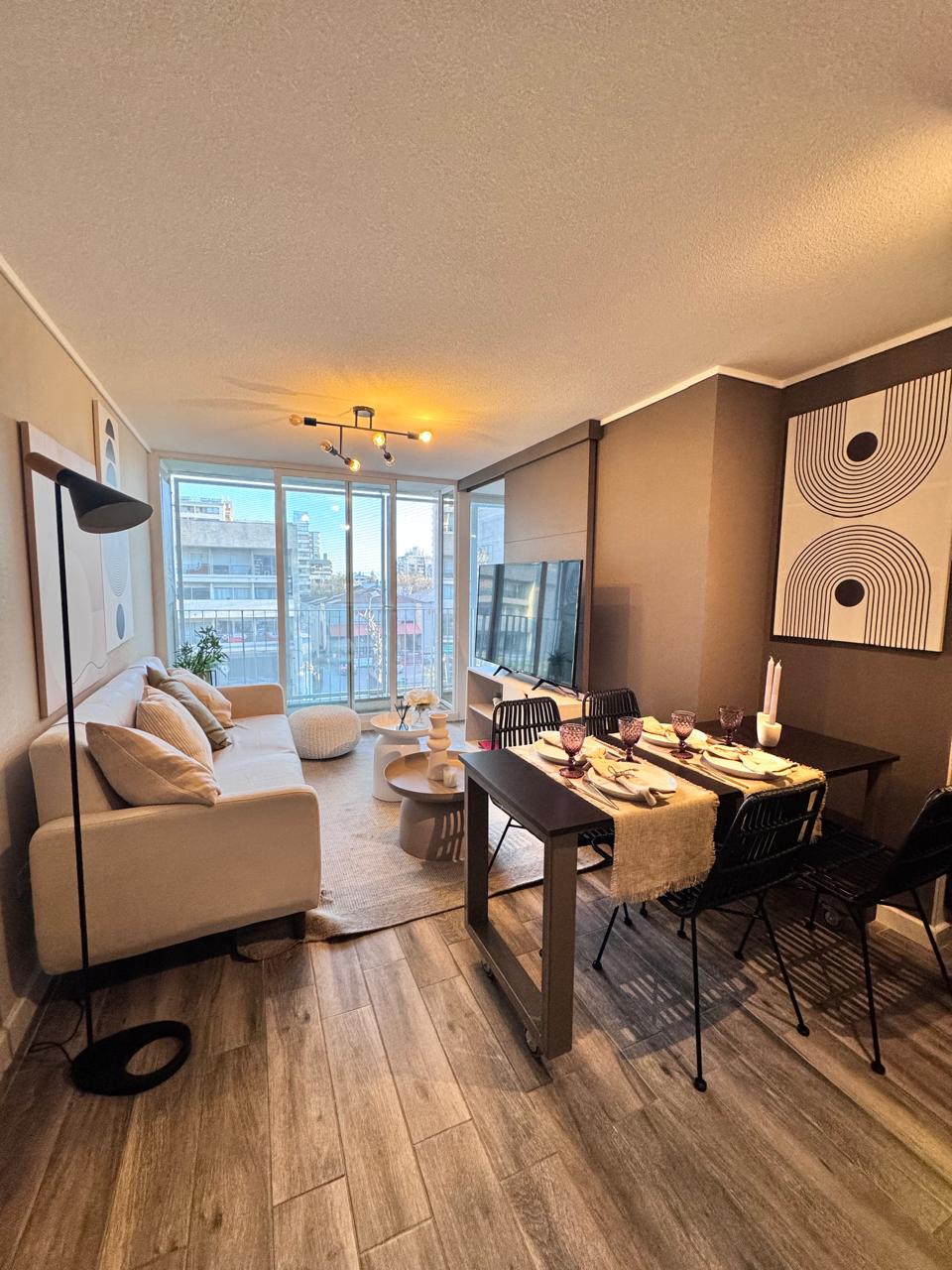 Enjoy a modern, bright, and carefully decorated apartment. Fully equipped for comfortable stays, it has a double bed, sofa bed, integrated kitchen, Smart TV, WiFi and balcony with a clear view. Located in a safe and connected area of Santiago, ideal for resting or working. A warm, functional space with attention to every detail to make you feel at home. Excellent location: close to Plaza Ñuñoa and Mall Portal Ñuñoa, sports centers. With good transportation.