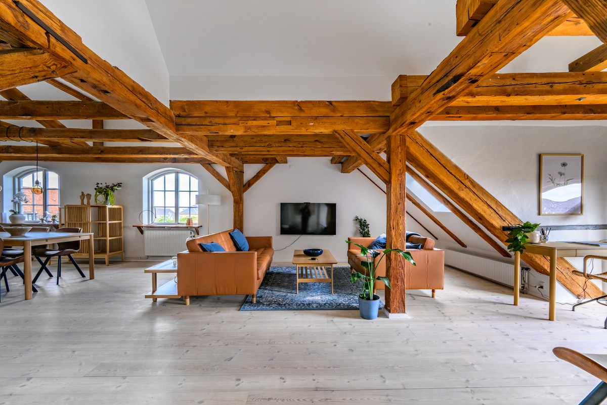 Unique and magnificent private apartment in an unbeatable location at the heart of Inner Copenhagens middle age area. Your own “town house” with a private entrance from a quit sidestreet. A high-end luxury spread over 140 sqm, you stay in a fusion Art Gallery luxury apartment Design furniture, hand built kitchen, wooden floors. high ceilings, contemp. art. Historic estate built in 1789 once a theater This place is also perfect for business meetings / work stays of longer or shorter periods