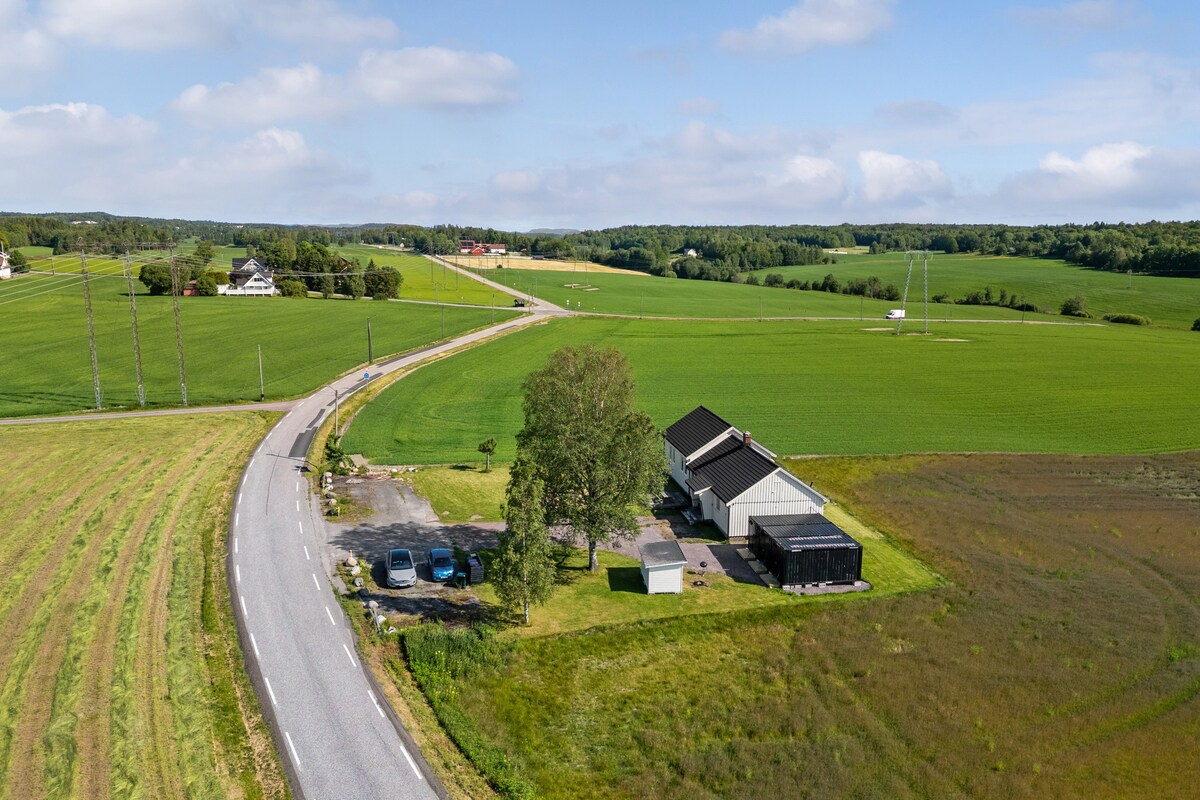 Enjoy peaceful days in charming country houses with sauna. 20 minutes from Sandefjord Airport Torp. Here you can relax in green surroundings with hiking areas right outside the door. 15 minutes to walk to lake. Perfect for couples or families (king size bed, 2 beds in the loft in the living room, 1 bed in the living room).Games and children's toys. Sauna, bed linen and towels incl. Good discounts for long-term rentals.
