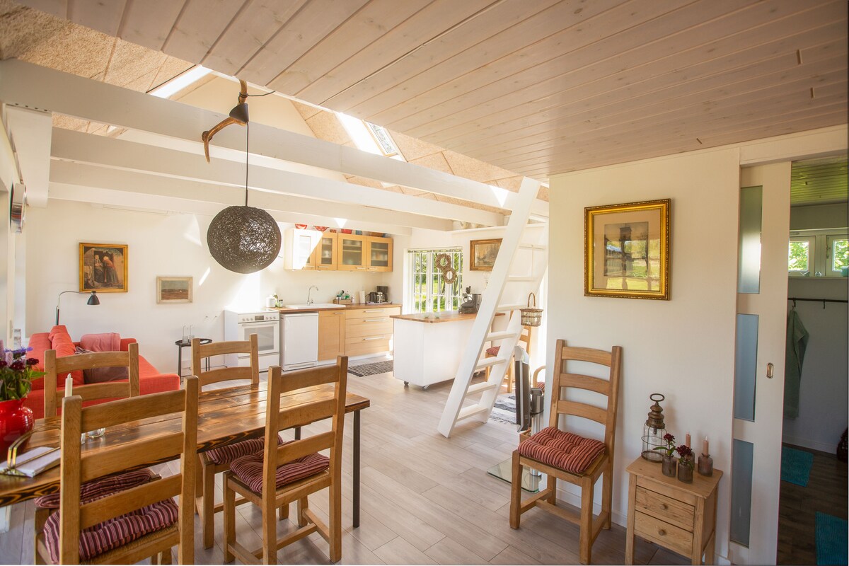 Welcome to an apartment with a unique atmosphere. The apartment includes a bedroom and a combined dinning room and little kitchen. There is also a big living room. You share bathroom with the owner and the bathroom is in a separate building and have your own entrance. The apartment is situated 3 km. from the beach - the best beach at the northern coast of Zealand and furthermore situated 1 km. from the forrest, Tisvilde Hegn, which is part of The National park - the kings North Zealand.