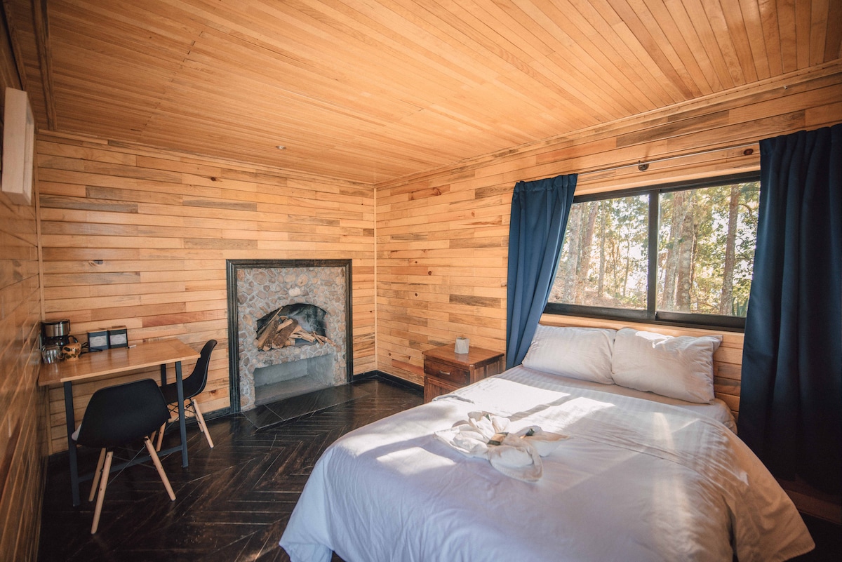 Cabin #3 (Two Floors) Enjoy a unique architectural experience in the heart of San José del Pacífico. Our Cabin #3 is designed to make you feel part of the forest, with integrated access to nature and unparalleled views. What makes this cabin special: Access: The adventure begins before you enter. To reach the first floor, you'll walk over a bridge suspended between trees, and for the second, you'll climb a staircase integrated inside.