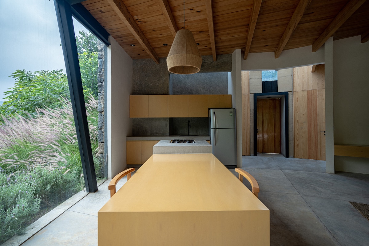 Enjoy the sounds of nature when you stay in this unique place. The "CASA NIM" studio is a design space on the road to Santo Domingo, 20 minutes from downtown Tepoztlán. Day and night the place is powered by solar energy and high-speed internet from Starlink (SpaceX). Swimming pool with solar heating and boiler (additional price), orchard, fruit forest, unparalleled views. Security 24hrs. Cleaning and other services are available to consult when booking. Suitable for 2 guests maximum.
