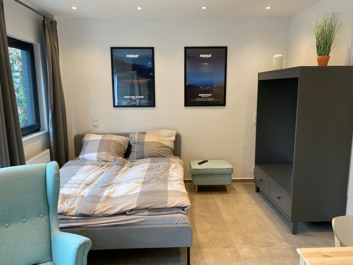 Our cozy granny annex offers you privacy and relaxation. You will enjoy a comfortable double bed, a well-equipped kitchenette and everything you need in the bathroom. Free Wi-Fi and street parking are included. Perfectly located for exploring the surrounding area and ideal for guests looking for a quiet, relaxing place to stay. We are looking forward to welcoming you!