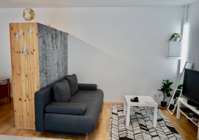 Welcome to Airbnb on the outskirts of Mainz! The 21 sqm apartment near fields, forest and meadow is ideal for individuals or couples. There is an open space equipped with a bed for two, a wardrobe and a dining table (without a kitchen); also a bathroom that offers everything needed. You can work here (Wi-Fi available) or spend your free time. Parking is free of charge and check-in is flexible after 4 pm. Enjoy your stay ☺️