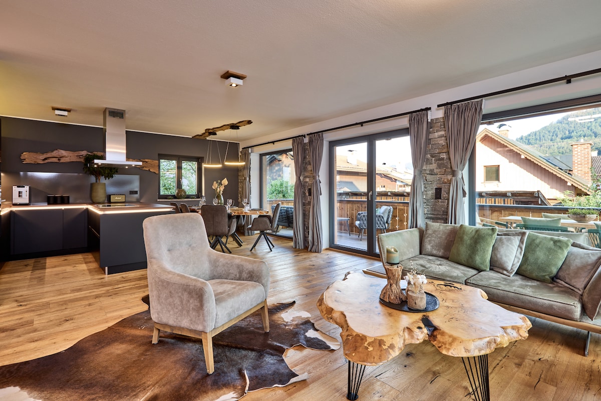 BergRoof, a dream! Enjoy unforgettable moments in a luxurious and exclusively furnished 85 square meter oasis of well-being. The absolute highlight: the incredible balcony terrace offers a magnificent view of the surrounding mountains. This charming apartment has two cozy bedrooms, a stylish bathroom and a modern kitchen with high-quality equipment. The open floor plan creates a cozy atmosphere and invites you to linger.